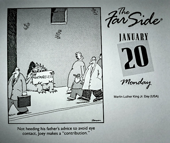 Even as a kid I never understood how Elmer couldn't see through that disguise. And since you mentioned Gary Larson I'd share today's calendar. I don't know how old these ones are, but so far this entire month I haven't seen any I've ever seen before...
