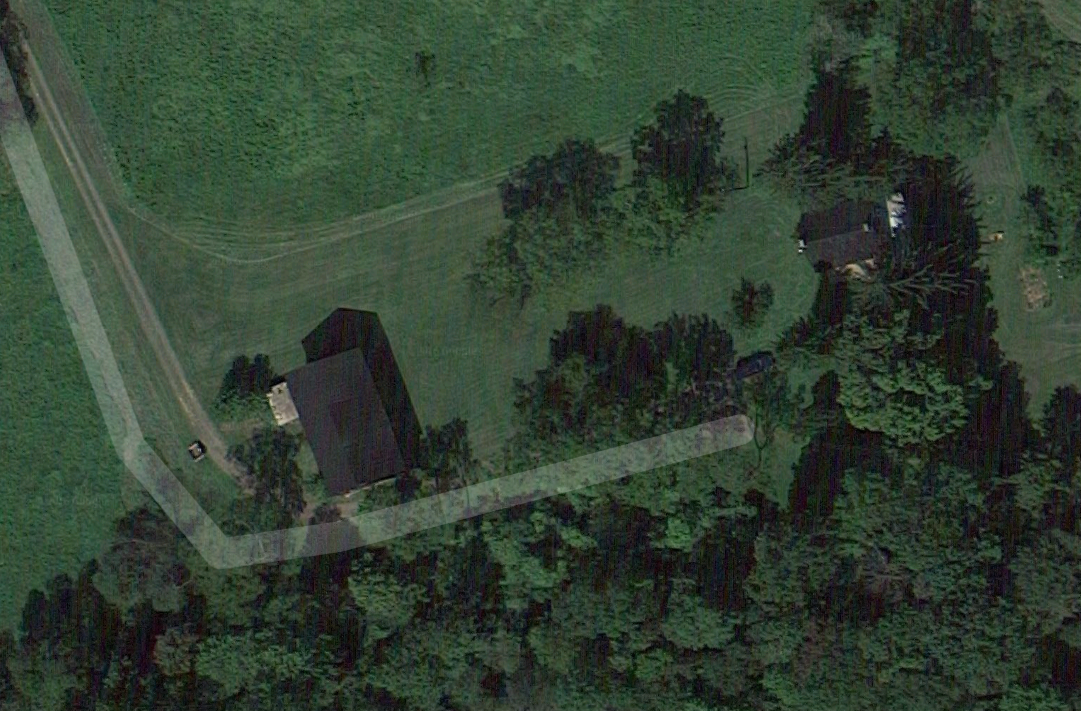 The big trees are all around the house. But there is a huge mulberry between the house and barn...