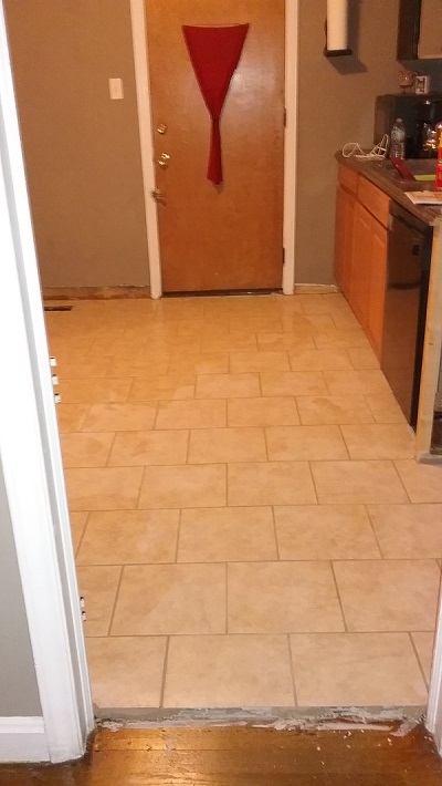 When tiling the floor in a 100+ year old house, you kinda need to do some creative things to help fool the eye into thinking things are aligned...
