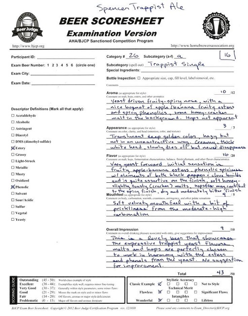 For practice we would score commercial beers on occasion...