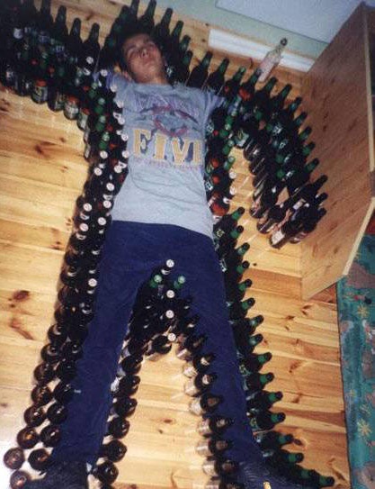 We weren't plastered enough and no one brought the Sharpie. Here's another heavy drinking of the hard stuff trip. How many trips were needed to restock the counter in the background...?
