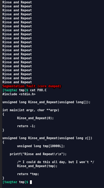 Why make it a recursive function when a simple while(1) would suffice...