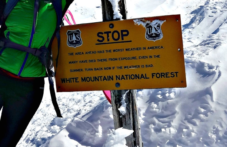 For the past many years when we head up north in the summer we hike the back-side of the mountain. It's funny to see those "Ski Boundary" signs - 8 feet in the air. One year I did some spring skiing at Wildcat which is about as close to fulfilling the Tuckerman run in the background...