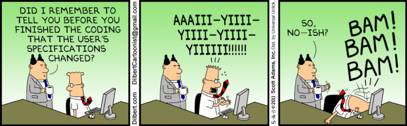 That's frustrating as hell. Just today during a demo with the Product team (who writes our features) involved, one of the devs was asking a bunch of questions to the Product team regarding some database columns and how we're not mind-readers. Since I've already been using the same table he'll be using, they asked if I was using the columns in questions. I just said, "Nope, they weren't mentioned as part of the feature." I heard the dev start to laugh right before he pushed his mute button. Product spends weeks writing up these features. If a spec isn't in there, I'm not concerned with it, even though when I saw those columns I knew right away they were going to be needed because they're important. I figure let this be a lesson to Product to stop wasting our time...