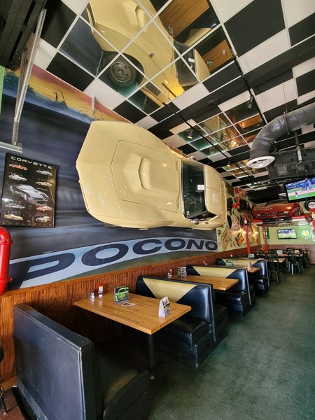The first time I have ever seen a car stuck to the wall was in a Quaker Steak and Lube...
