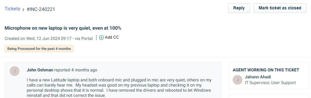 Wanna talk support, our support team is shit.  I'm not talking about the software support team that manages customer tickets related to our software, those folks are amazing.  I'm talking about our internal support / IT team.  Those folks suck.  So a few months ago, the laptop finally dies.  Now we're supposed to get new laptops every three years, the laptop that I had was approaching year six and the fan died causing it to overheat and kill the processor.  Not to mention the case was bulging slightly under the track pad.  But because I didn't use the track pad, it wasn't an issue (they said).  Of course without thinking, oh, that's where the batteries are.  Anyway, they send me a new laptop and I plug my headset into the 1/8" headset jack.  There aren't enough USB ports, one is for power, one for the external backup drive, one for mouse and one for keyboard.  Ok, this headset can just plug into the mic jack.  After that, all of my calls complained that my mic was really low, and for the life of me, I couldn't figure it out, thinking it's a driver issue, a Win 11 setting issue, something, anything, so I opened a ticket with IT support.  Meanwhile I'm on with one of my customers on their project and the call was finished and they offered to help me look for the problem.  It turns out the mic jack is just a headphone jack.  (facepalm).  Anyway, that was already a few weeks after I opened the ticket, so for shits and giggles, I'm waiting to see how long before someone recognizes that there is a ticket that has been opened and nothing updated for months...
